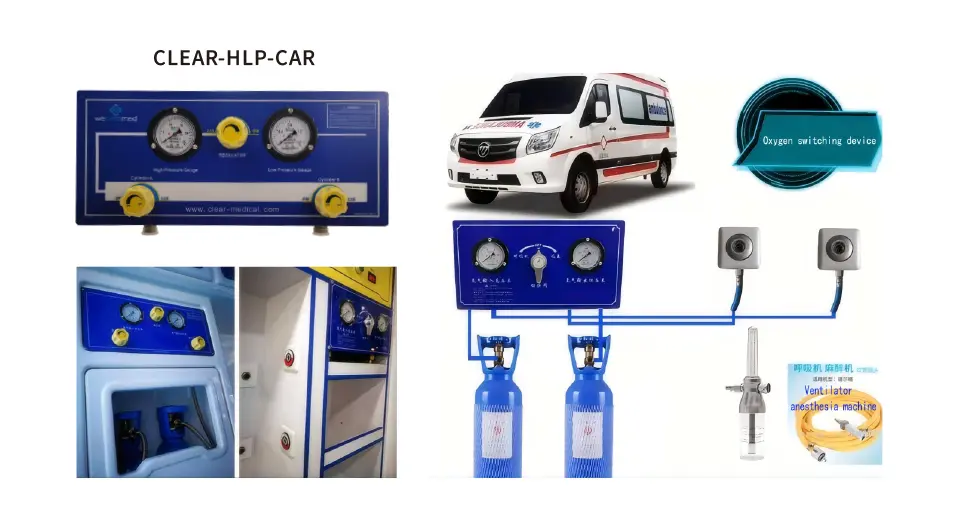 1。此设备适用于大量消耗氧气的救护车。瓶装的高压氧是通过金属软管输入控制面板主管的。高压氧减少后,将其通过低压管运输到氧气末端,该管道用作紧急使用的氧气来源。它的工作原理是通过自己的管道分别将高压氧对低压解压缩到氧末端,并将其解压缩到氧末端和氧气末端和呼吸机端口。